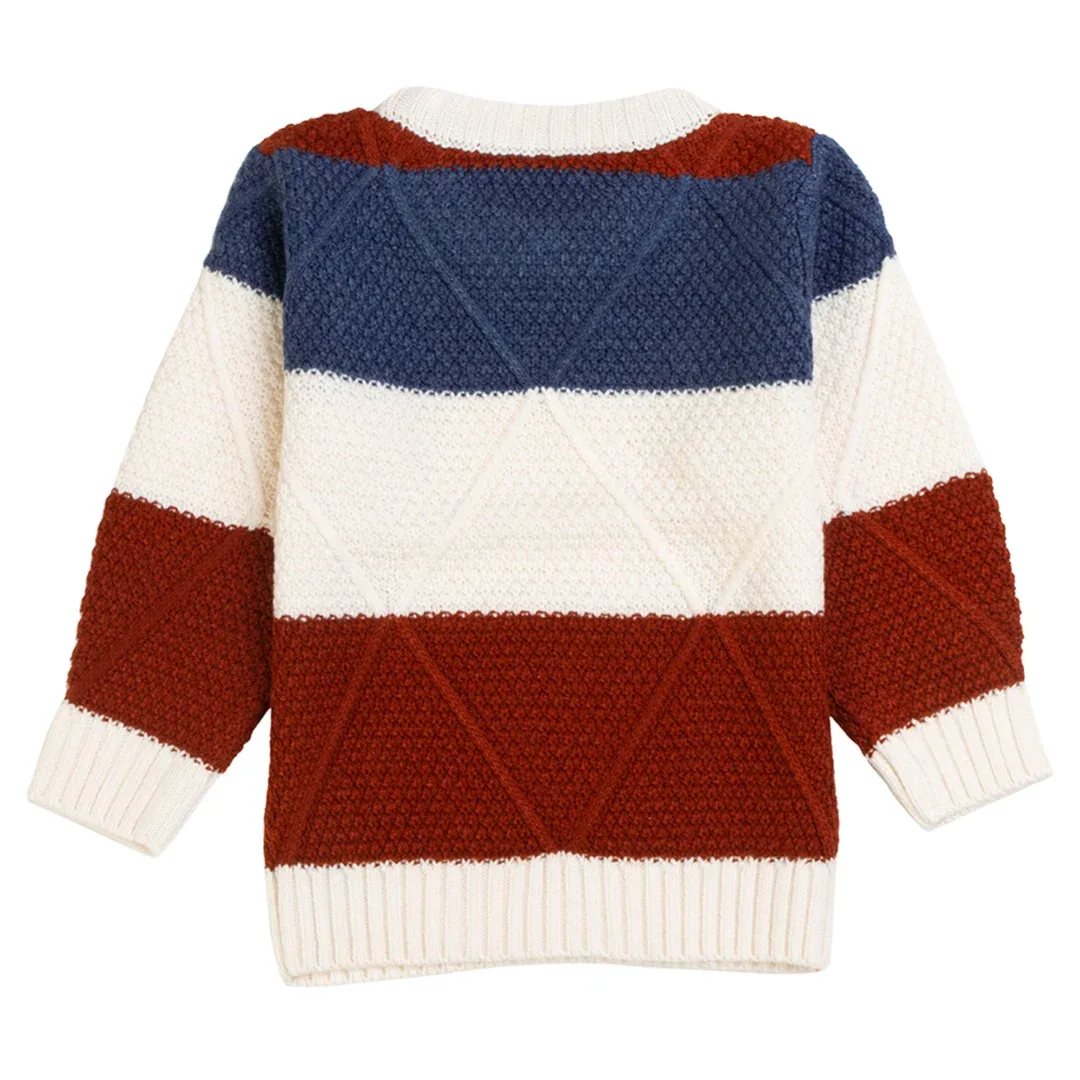 Pulakin Boys’ Colorful Striped 100% Acrylic Sweater – White-Rust-Blue