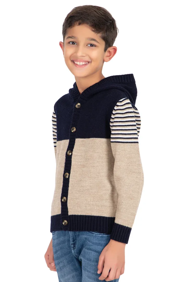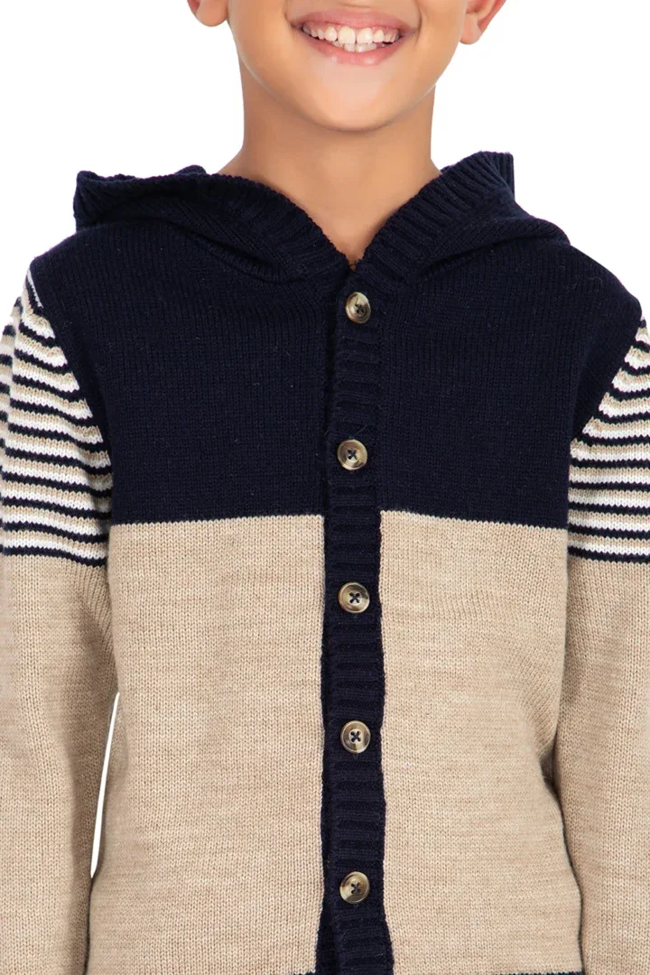 Pulakin Boys’ Cozy Multi-Stripe Acrylic Hoodie Sweater