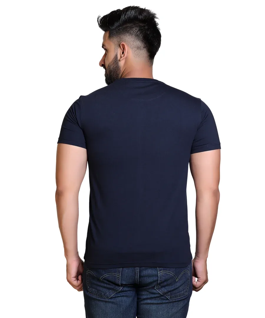 Pulakin Men’s Casual Navy Printed Round Neck Tee