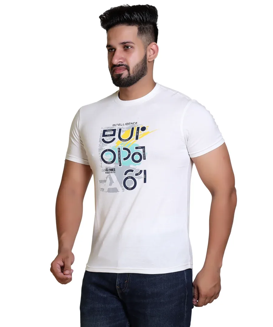 Express your individuality with the Pulakin Round Neck Printed T-Shirt for Men. This stylish and comfortable tee is designed to make a statement, combining contemporary graphics with exceptional comfort.