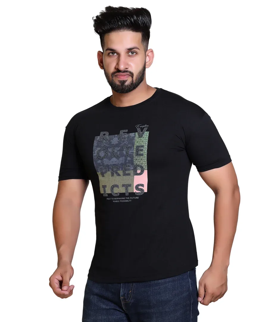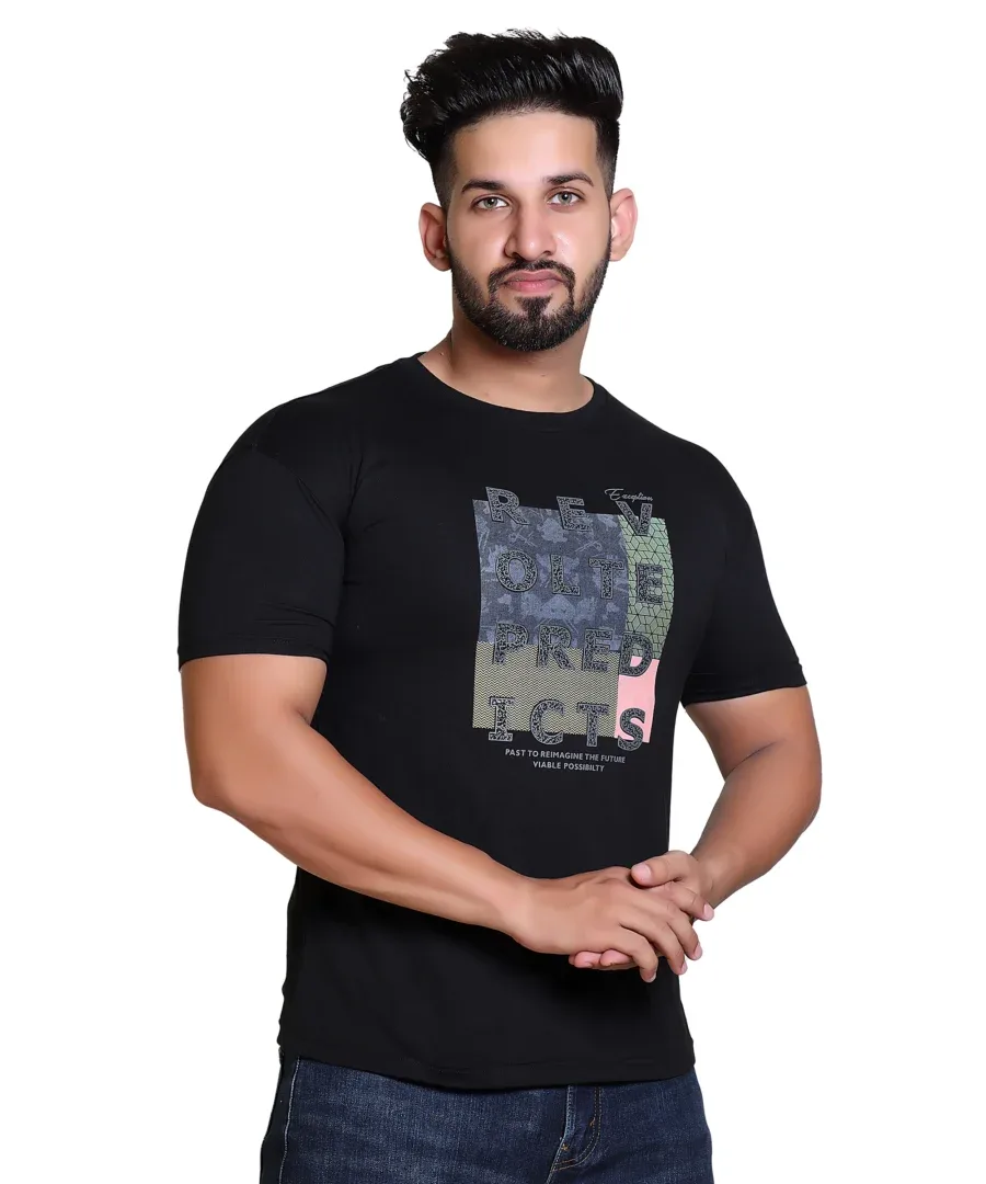 Pulakin Stylish Black Graphic Round Neck Tee for Men