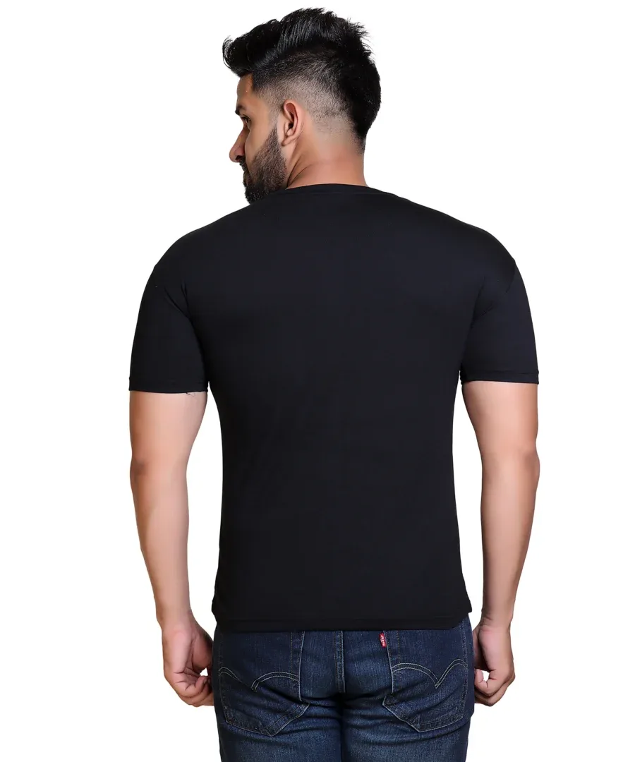 Introducing the Pulakin Round Neck Printed Black T-Shirt for Men, a perfect blend of contemporary style and unbeatable comfort. This versatile tee elevates your casual wardrobe with its modern print and classic black hue.