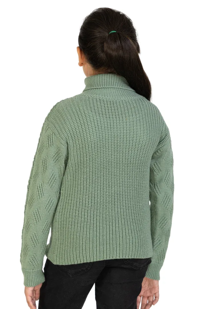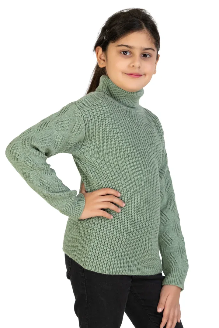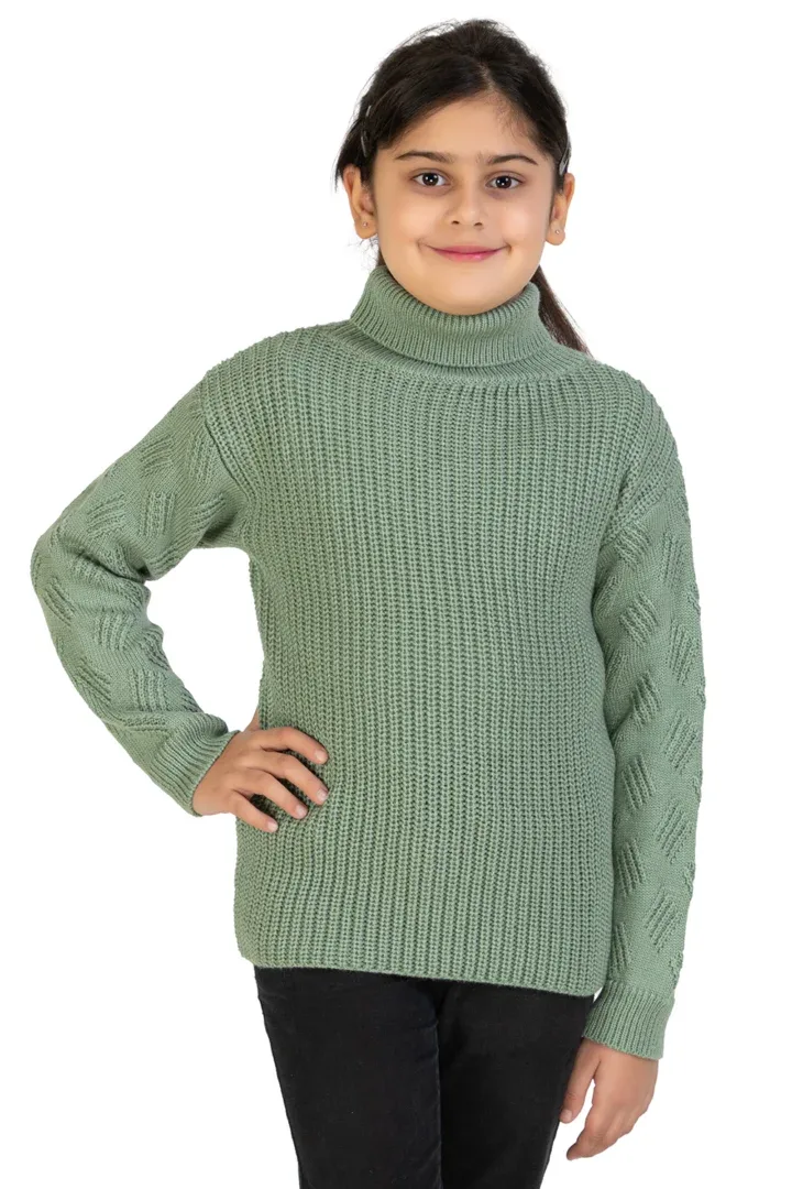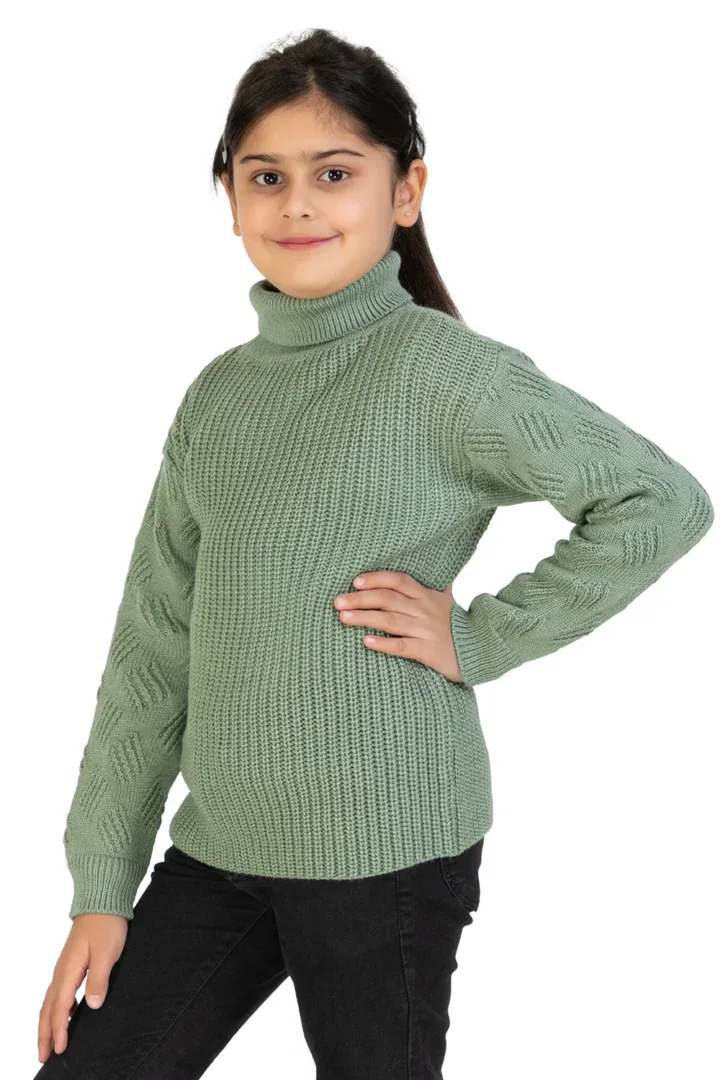 Pulakin Youth Girls’ Solid Color Pista Round Neck Nylon Sweater