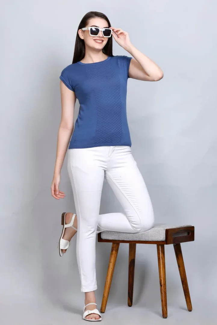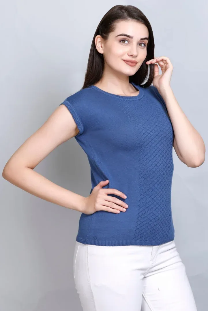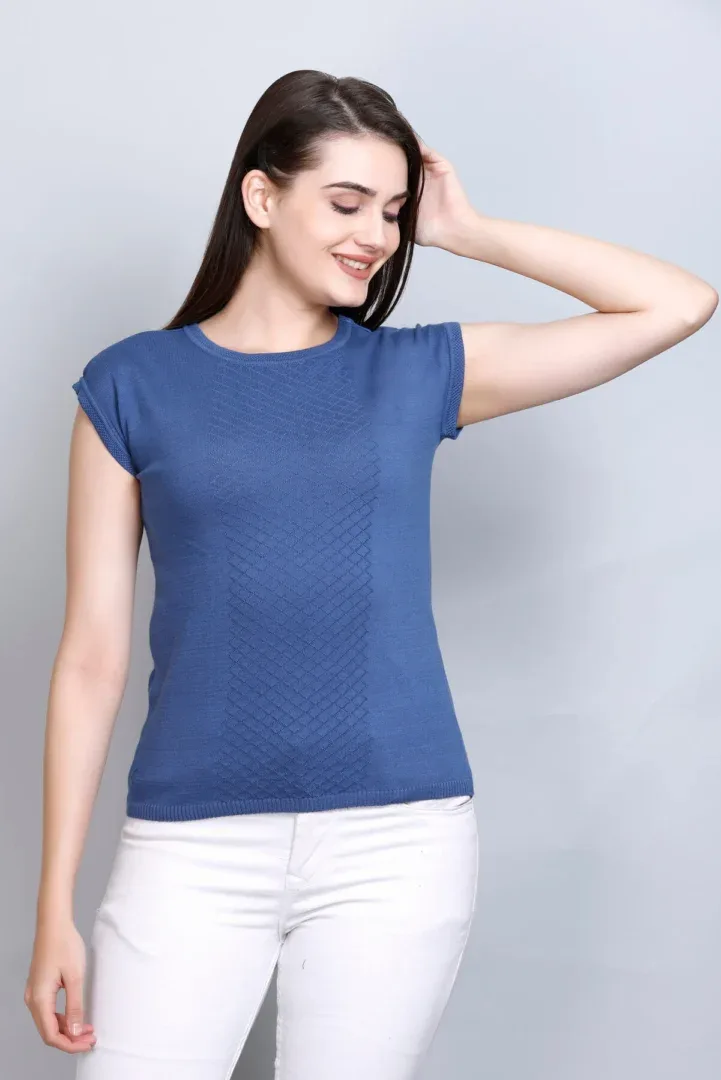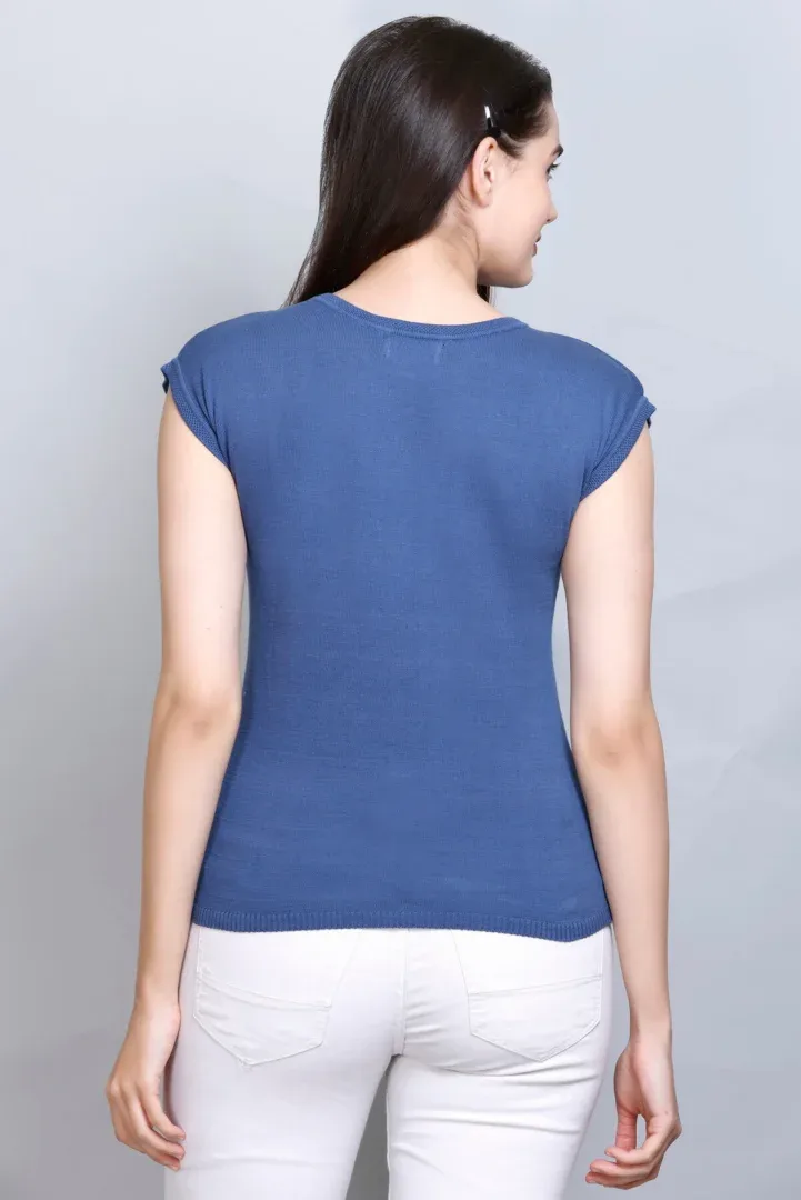 Pulakin Allnit 100% Cotton Women’s T-Shirt – Boat Neck, Navy Blue
