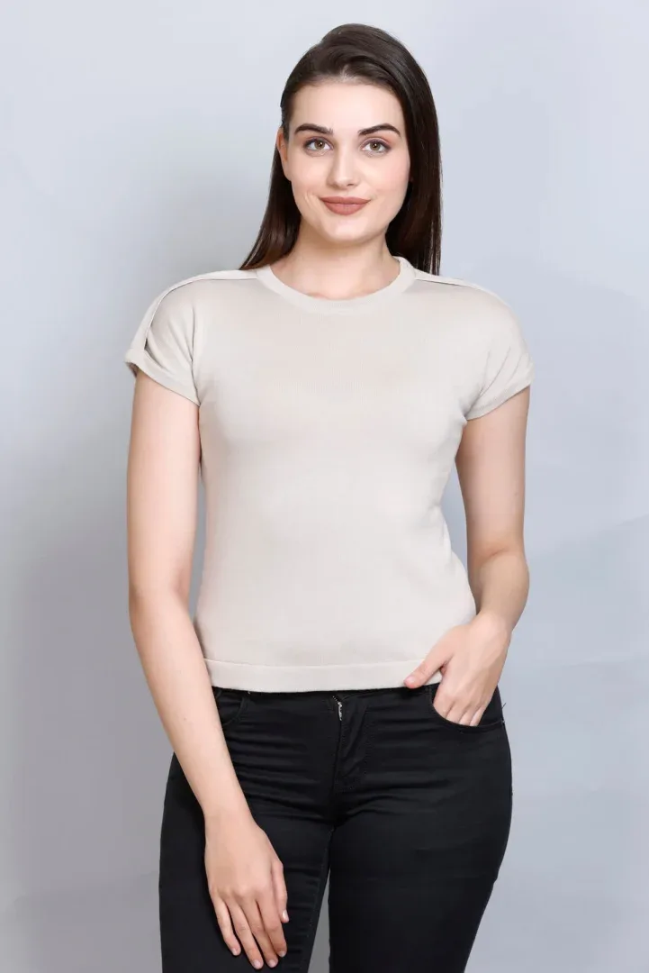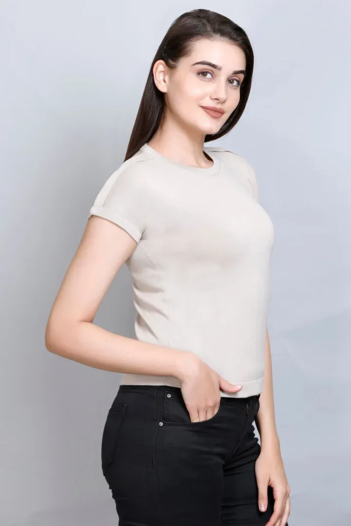 Pulakin Allnit 100% Cotton Women’s Plain T-Shirt – Boat Neck