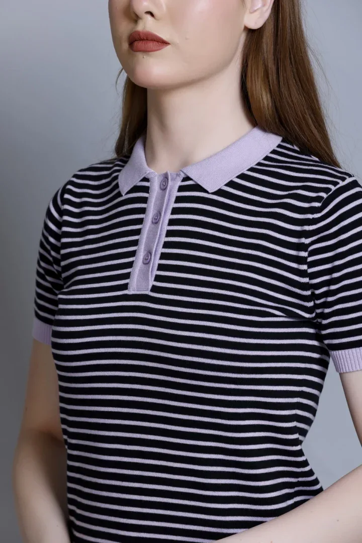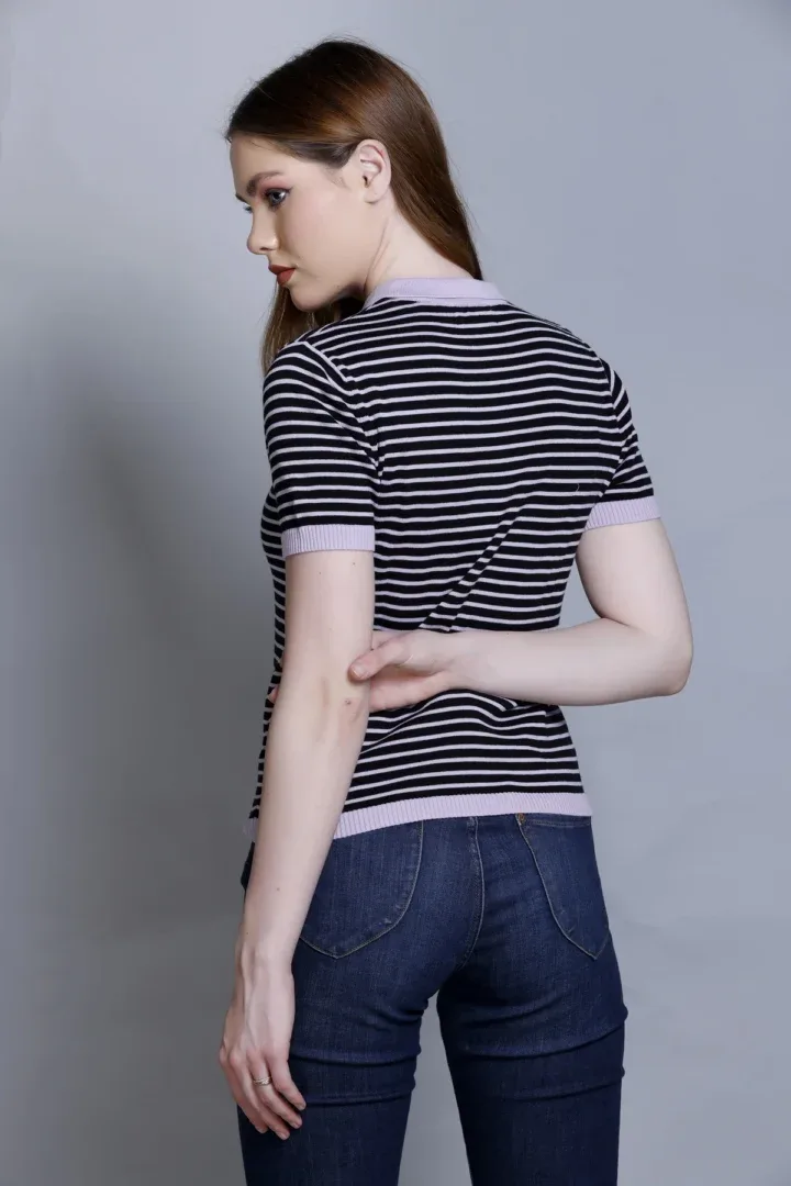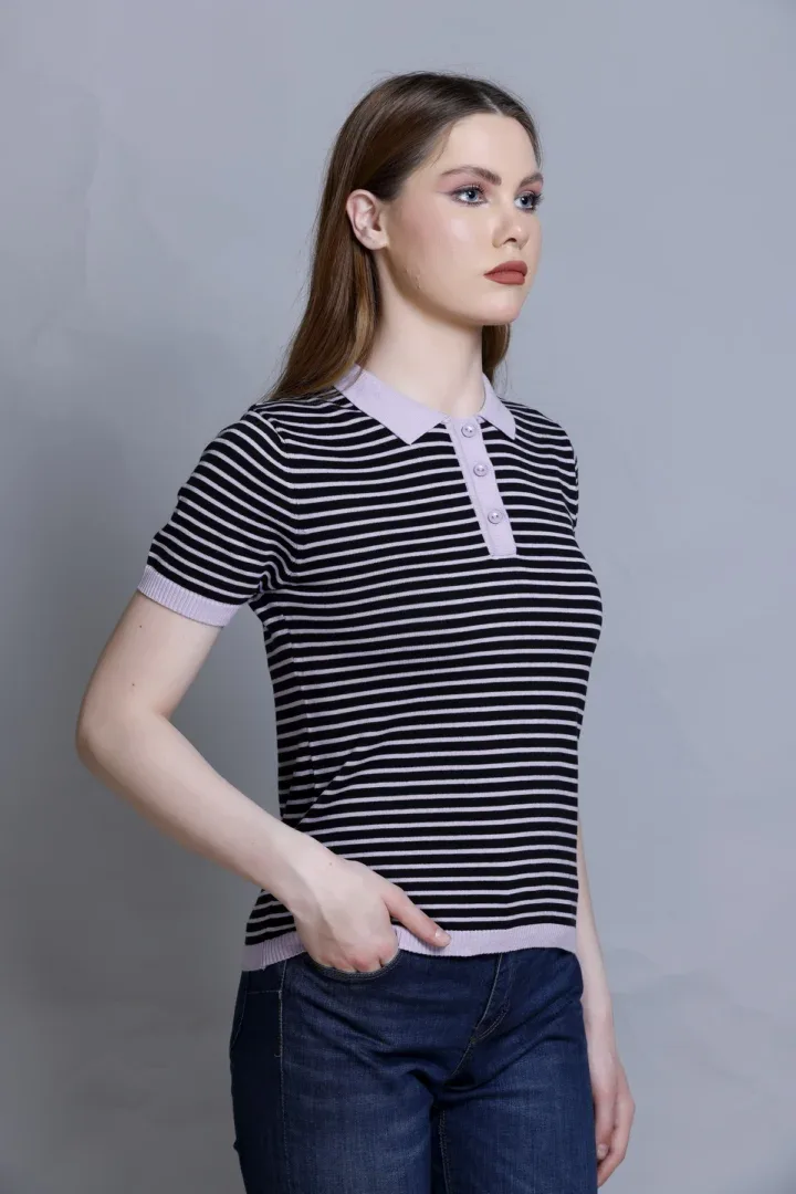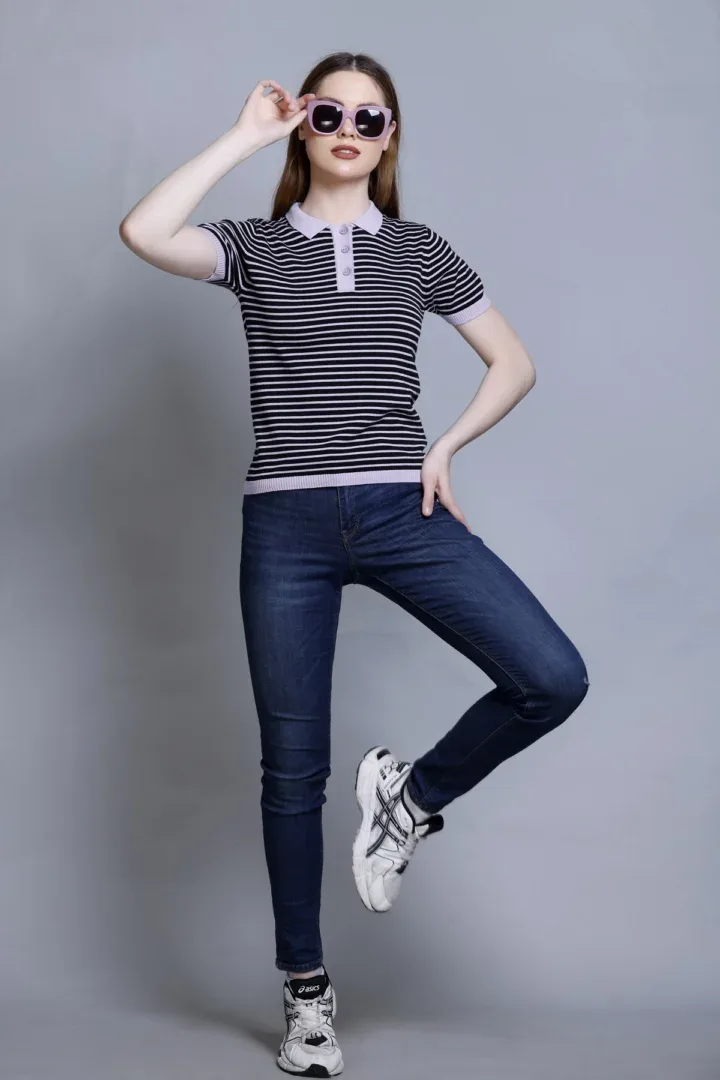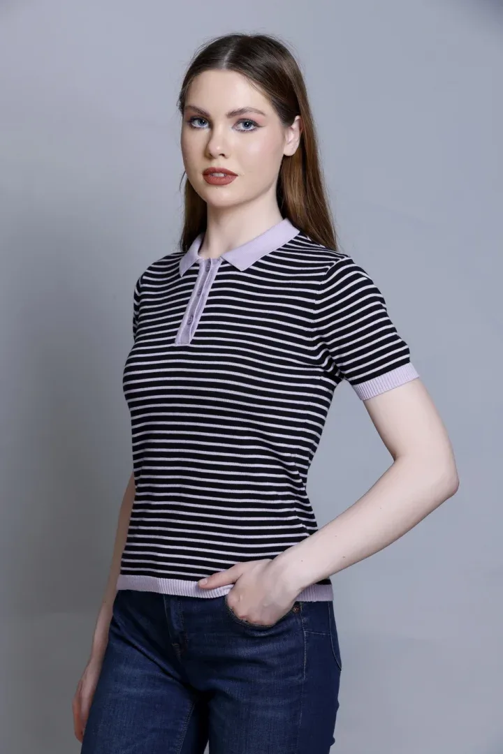 Women’s Polo T-Shirt – Stripper Black & Grey, Allnit 100% Premium Cotton
